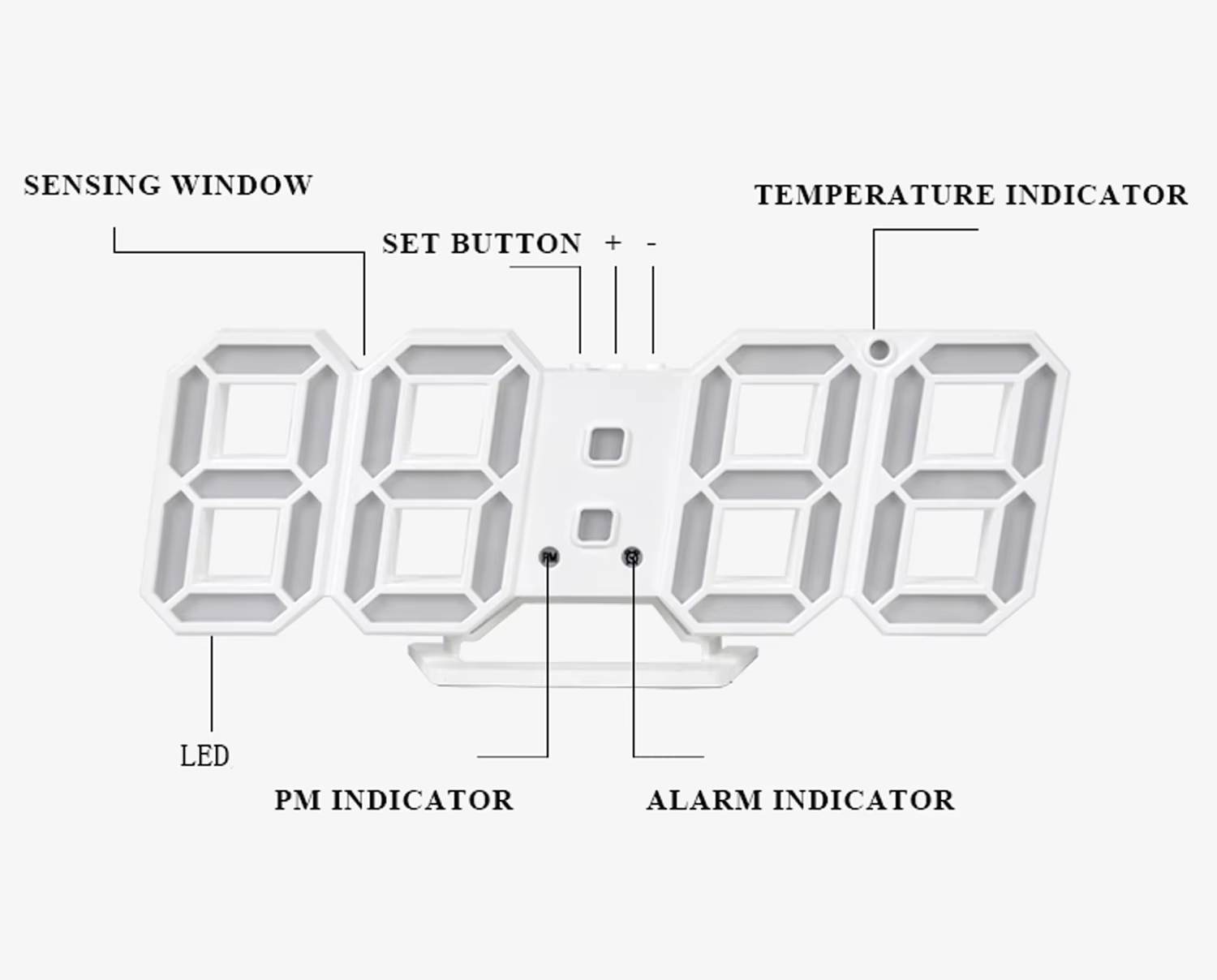 Modern 3D LED Display – Bright and clear digital numbers for easy readability.